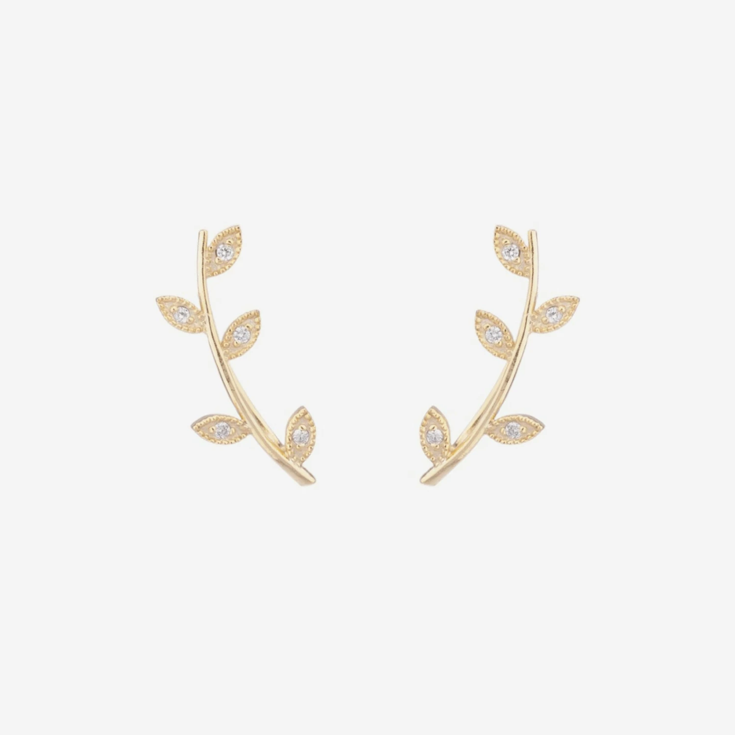 The floral vine form carries streamlined modernity. Ear climber is easily adjustable movement post, comfortable enough to sleep in. Hand-set pave stones offers brilliant shine and sparkle