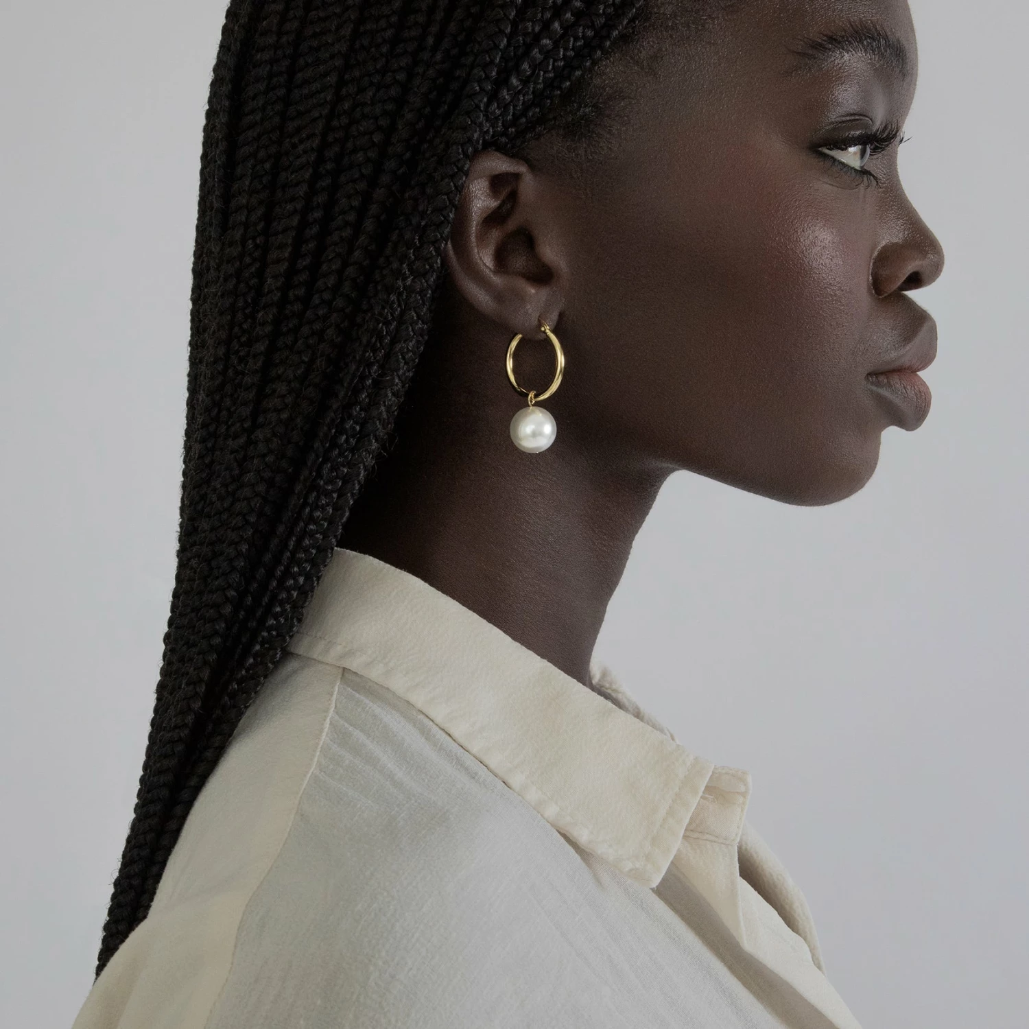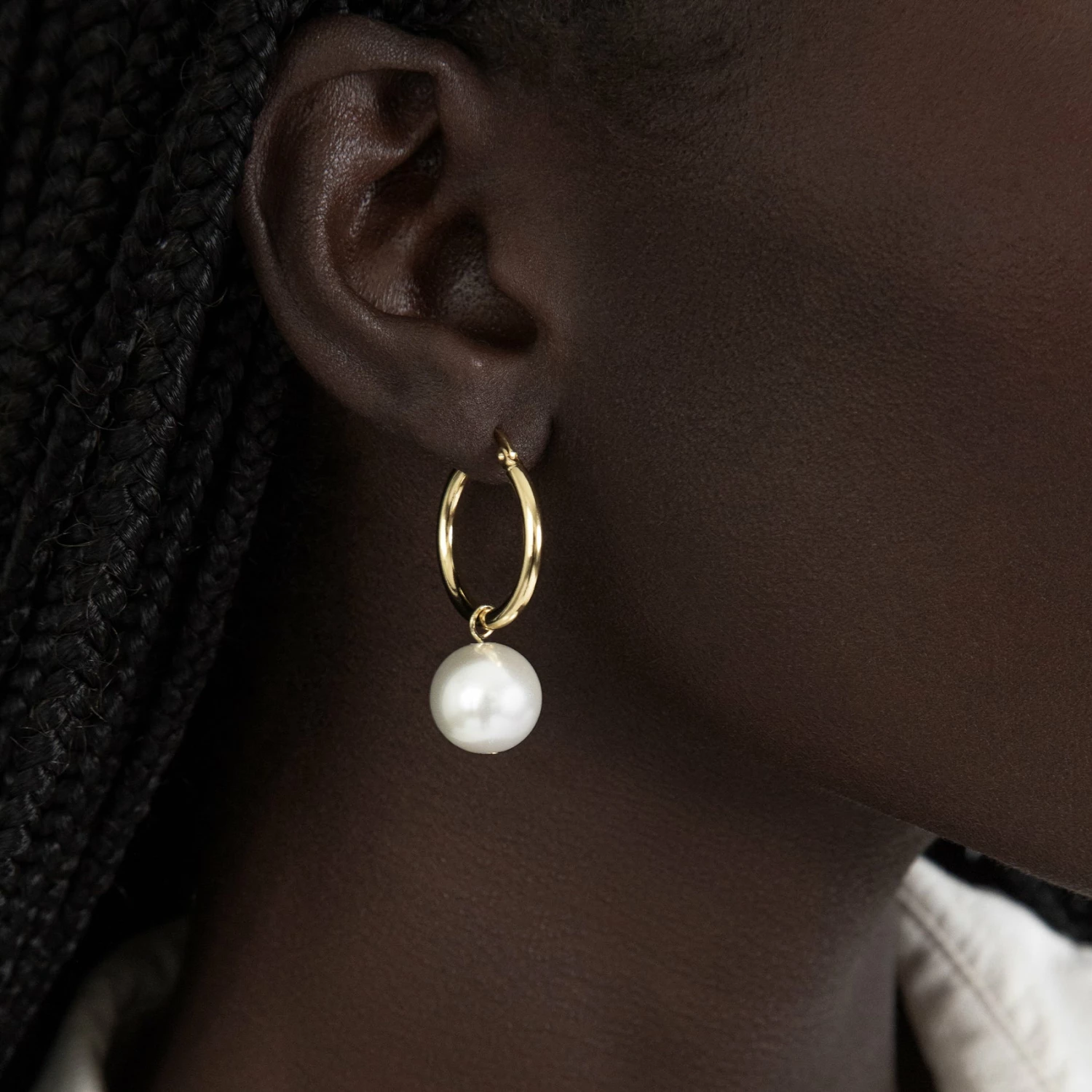 Everyday hoops with a touch of added glamour. A Swarovski pearl dangles from the hoop for pure sophistication. An updated and modern take on a timeless classic.