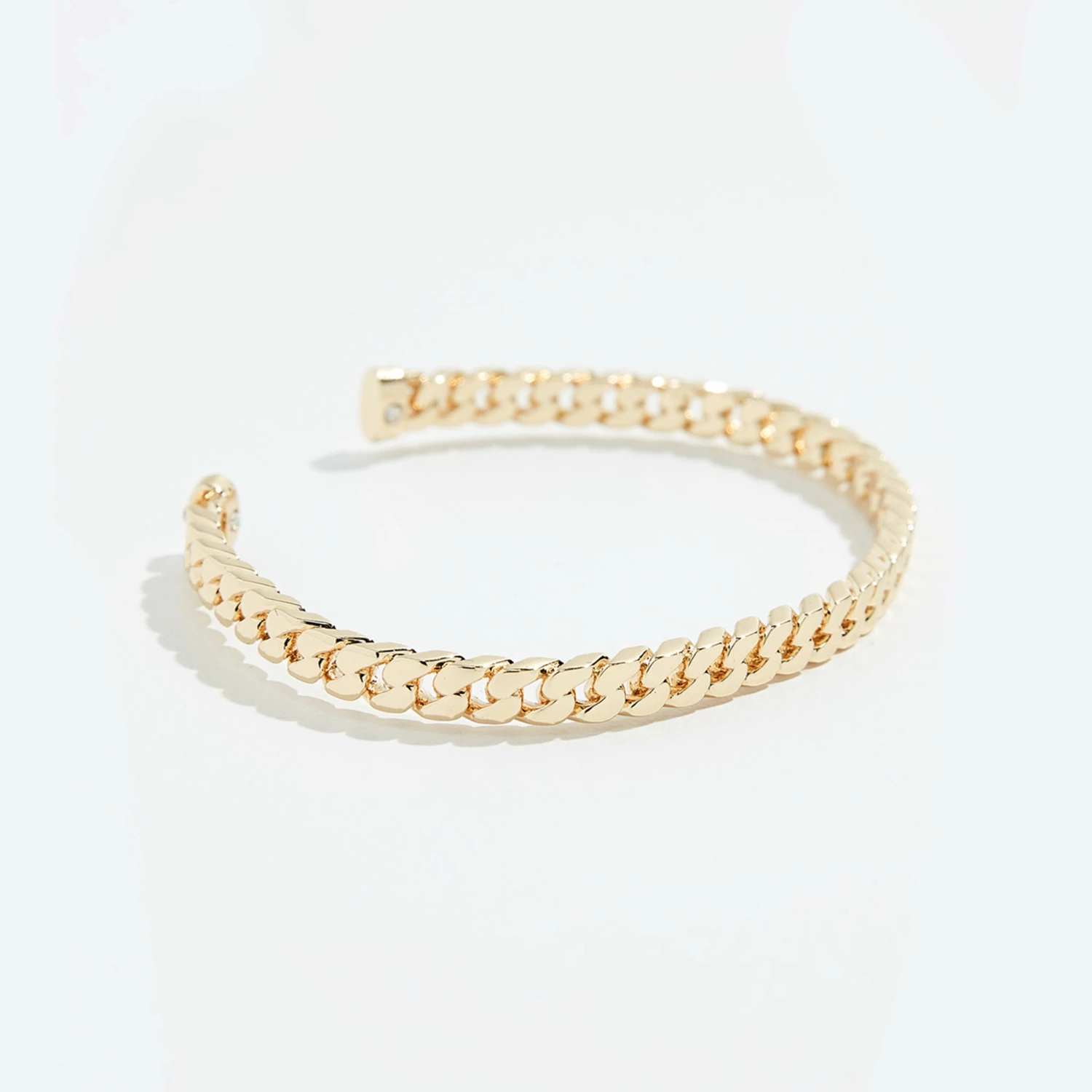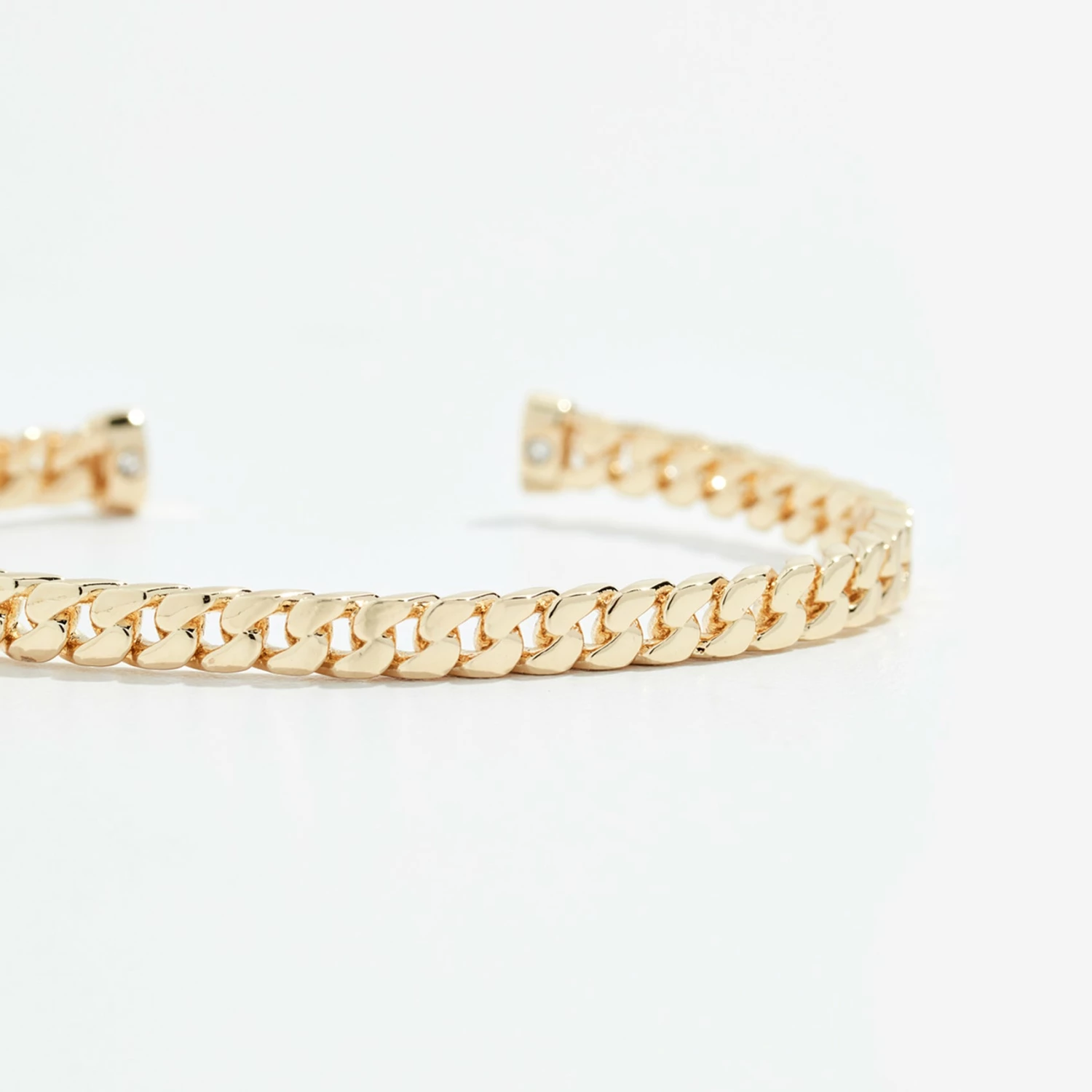 A nod to the sublime beauty of the curb chain.Β Powerfully feminine with an effortless ease. A twist on this iconic design, this gold-tone bracelet cuff honors the classical eleganceΒ of the distinct chain whileΒ captivating modernity.Β Thoughtful craftsmanship features aΒ solid feel yetΒ completely adjustable for comfort.Β Easy to wear elegance.